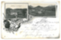 Postkarte Farbige Postkarte; Motiv: 3 Zeichnungen von Niedersonthofen; Briefmarke wurde entfernt; 2 Poststempel -
