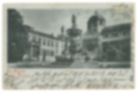 Postkarte Postkarte; Schwarzer Druck auf bläulichem Papier; Motiv: Foto von dem Barocken Brunnen am Domplatz in Trient; 5 Heller Briefmarke mit Poststempel Hittisau -