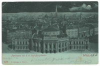 Postkarte Bläuliche Postkarte mit schwrazem Aufdruck; Motiv: Wien mit Nachthimmel, Mond und Sternen; 5 Hellerbriefmarke mit 2 Poststempeln Wien und Hittisau -