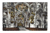 Postkarte Stiftskirche Einsiedeln Postkarte Stiftskirche Einsiedeln; Briefmarken überkleben den äußeren Teil der Schrift -