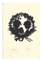 Postkarte Scherenschnitt Der Scherenschnitt-Aufdruck auf der Bildseite stellt drei Kinder dar, deren Köpfe von einem Blumenkranz umgeben sind, zwischen dessen Schleifen "H. Zadnik" steht; Abgestempelt wurde die Postkarte am 1935-11-18 in Bregenz; 12-Groschen-Briefmarke; -
