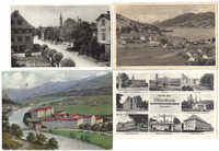 Postkarte Ortsansicht 4 Postkarten; 01: schwarz-weißes Foto von Bühl; mit einem Bleistiftkreuz wurde ein Ort markiert; Abgestempelt am 1930-07-05 in Immenstadt; Briefmarke des Deutschen Reiches; 02: schwarz-weißes Foto einer Straße in Höchst; im Hintergrund ist der Kirchturm zu sehen; Abgestempelt am 1934-04-16 in Gaissau; 12-Groschen-Briefmarke (Traunsee); 03: Auf der Bildseite ist ein bunte Zeichnung von einem Haus, das auf der Rückseite mit "Mutterhaus und Sanatorium der / Barmherzigen Schwestern in Innsbruck / an der Kettenbrücke" beschrieben ist; Abgestempelt in Andelsbuch; Briefmarke des Deutschen Reiches; 04: Verschiedene Bilder aus Oldenburg; (Gruss aus Oldenburg / Die freundliche Gartenstadt an der Hunte / der Weg zur Nordsee / Schloß m. 91er Ehrenmal / Bahnhof / Am Stall / Staats-Theater / Landessparkasse zu Oldenburg / Staatsministerium / Trollibus Wendestelle / Adolf-Hitler-Haus) -