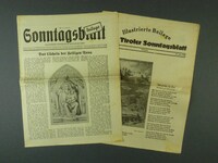Tiroler Sonntagsblatt - Illustrierte katholische Wochenschrift 27 Zeitungen (FM-756-01 bis FM-756-27) des "Tiroler Sonntagsblatt"; Vorhanden sind folgende Zeitungen: 1938-12-25, Nr.51; 1939-01-01, Nr.1; 1939-01-08, Nr.2; 1939-01-15, Nr.3; 1939-01-22, Nr.4; 1939-01-29, Nr.5; 1939-02-04, Nr.6; 1939-02-12, Nr.7; 1939-02-19, Nr.8; 1939-02-26, Nr.9; 1939-03-05, Nr.10; 1939-03-12, Nr.11; 1939-03-19, Nr.12; 1939-03-26, Nr.13; 1939-04-02, Nr.14; 1939-04-09, Nr.15; 1939-04-16, Nr.16; 1939-04-23, Nr.17; 1939-04-30, Nr.18; 1939-05-07, Nr.19; 1939-05-14, Nr.20; 1939-05-21, Nr.21; 1939-05-28, Nr.22; 1939-06-04, Nr.23; 1939-06-11, Nr.24; 1939-06-18, Nr.25; 1939-06-25, Nr.26; -