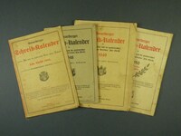 Vorarlberger Schreibkalender Kalender; 01: 1941 - 91. Jahrgang 02: 1942 - 92. Jahrgang 03: 1947 - 97. Jahrgang 04: 1948 - 98. Jahrgang 05: 1949 - 99. Jahrgang 06: 1950 - 100. Jahrgang Die Kalender enthalten alle handschriftliche Notizen. -