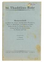 St. Thaddäus- Bote; Monatsschrift; 1. Jahrgang; Heft 1 St. Thaddäus- Bote; Monatsschrift; 1. Jahrgang; Heft 1; Im Heft liegt ein 29 x 23 cm großes, dünnes Blatt: Zweimonatlich erscheinende Korrespondenzen-Sammlung von Priestern und Laien -