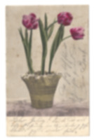 Postkarte Tulpen Nachträglich coloriert. 5 Heller Briefmarke -