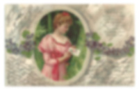 Postkarte Farbige Postkarte; Motiv: Ovales Bild mit Mädchen im rosafarbigen Rüschenkleid, Hochsteckfrisur mit rosa Schleife, Blumenranken 5 Heller Briefmarke, abgestempelt: KAINACH 17.12.03 -