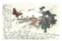 Postkarte von Mutter an Julius Salzmann Farbige Postkarte mit Schmetterlingen und Blumen; Auf den Schmetterlingen ist eine raue, goldglitzernde Schicht aufgedruckt. 5 Heller Breifmarke mit Poststempel -
