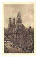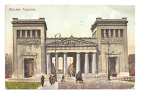Postkarte München, Rathaus und Frauenkirche Ansichtskarte der Propyläen in München, gemalt; gestempelt in München und Hittisau -