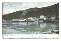 Postkarte Bregenz Hafen Korrespondenz-Karte mit Ansicht von Bregenz Hafen, koloriert. Auf der Vorderseite beschriftet. Gestempelt in Bregenz und Hittisau. -