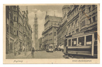 Postkarte Augsburg Abgebildet ist die Untere Maximilianstraße, Augsburg; Abgestempelt in Augsburg, Briefmarke des Deutschen Reiches.