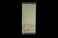 Handtuch rot bestickt; Blumenornamente; Spruch: "Grüss Gott!" -