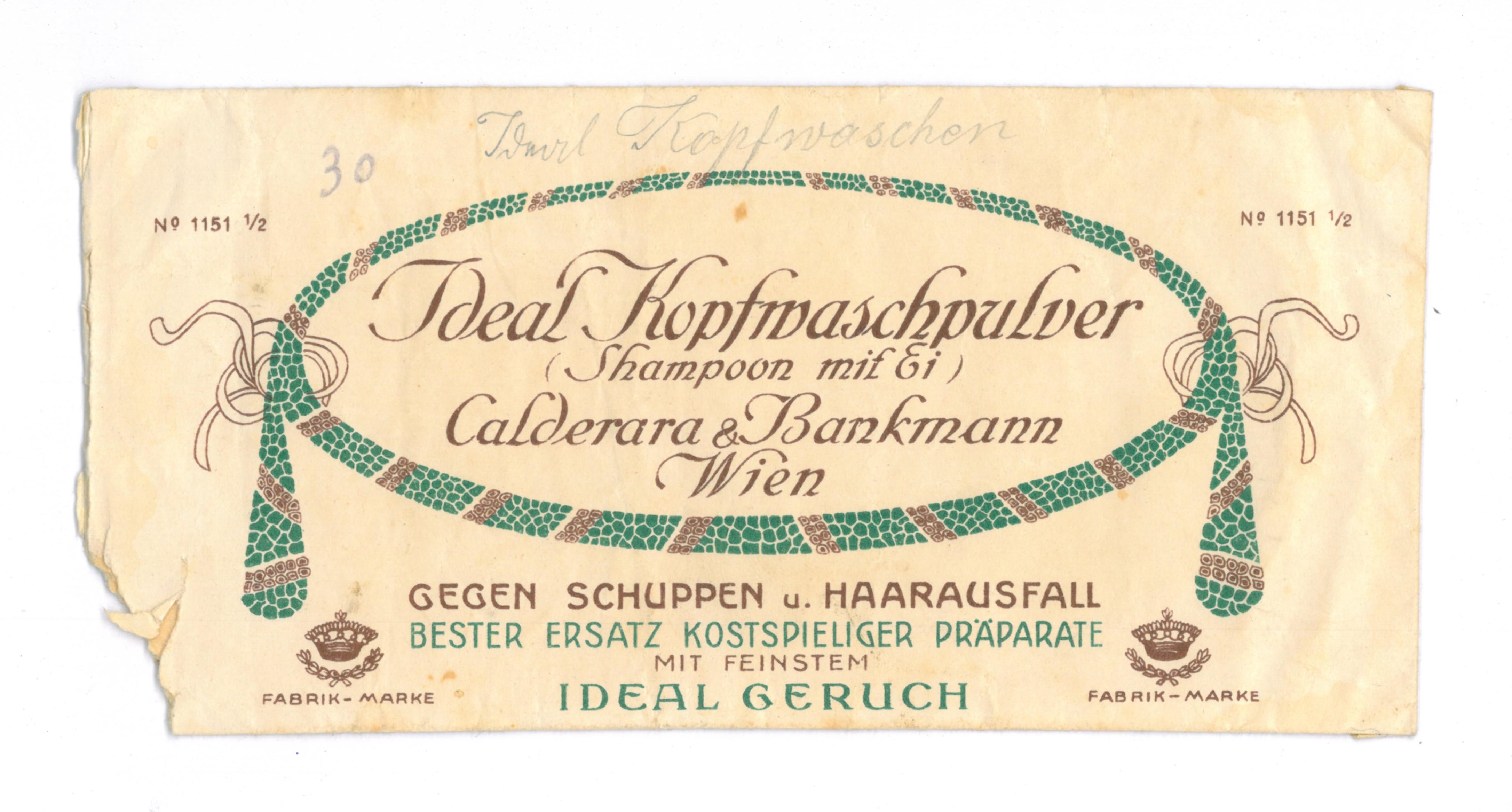 - Papiertüte; Ideal Kopfwaschpulver (Shampoon mit Ei); an der linken Seite offen; leer