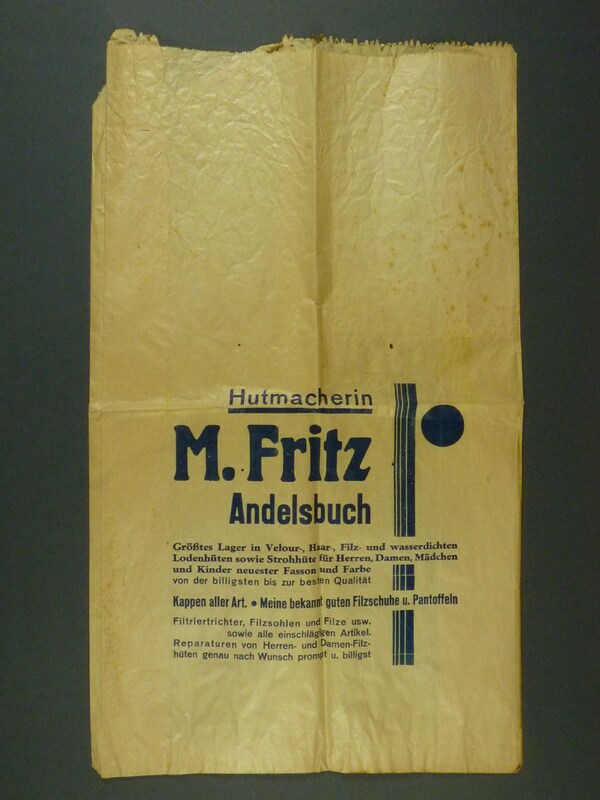 Papiertüte der Hutmacherin M. Fritz aus Andelsbuch