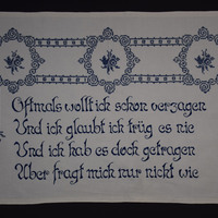 Spruch: "Oftmals wollt ich schon verzagen / Und ich glaubt ich trüg es nie / Und ich hab es doch getragen / Aber fragt mich nur nicht wie". - Umfang