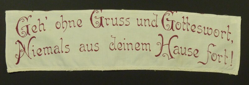 Spruch: "Geh' ohne Gruss und Gotteswort, / Niemals aus deinem Hause fort! / - Umfang