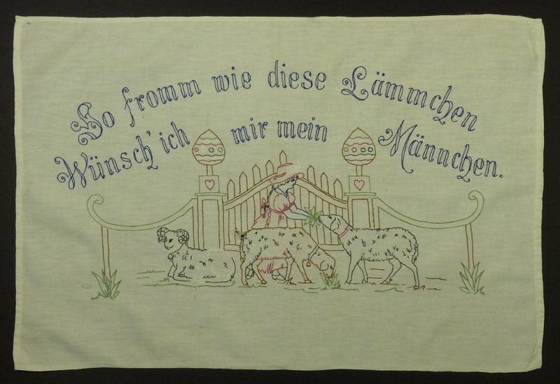 Spruch: "So fromm wie diese Lämmchen / Wünsch' ich mir mein Männchen." - Umfang