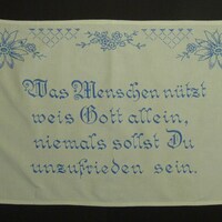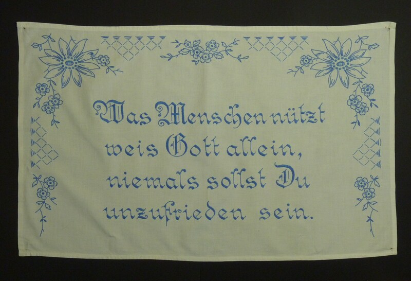 Spruch: "Was Menschen nützt / weis Gott allein, / niemals sollst Du / unzufrieden sein."