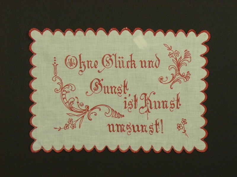 Spruch: "Ohne Glück und / Gunst, / ist Kunst / umsunst!" - Umfang