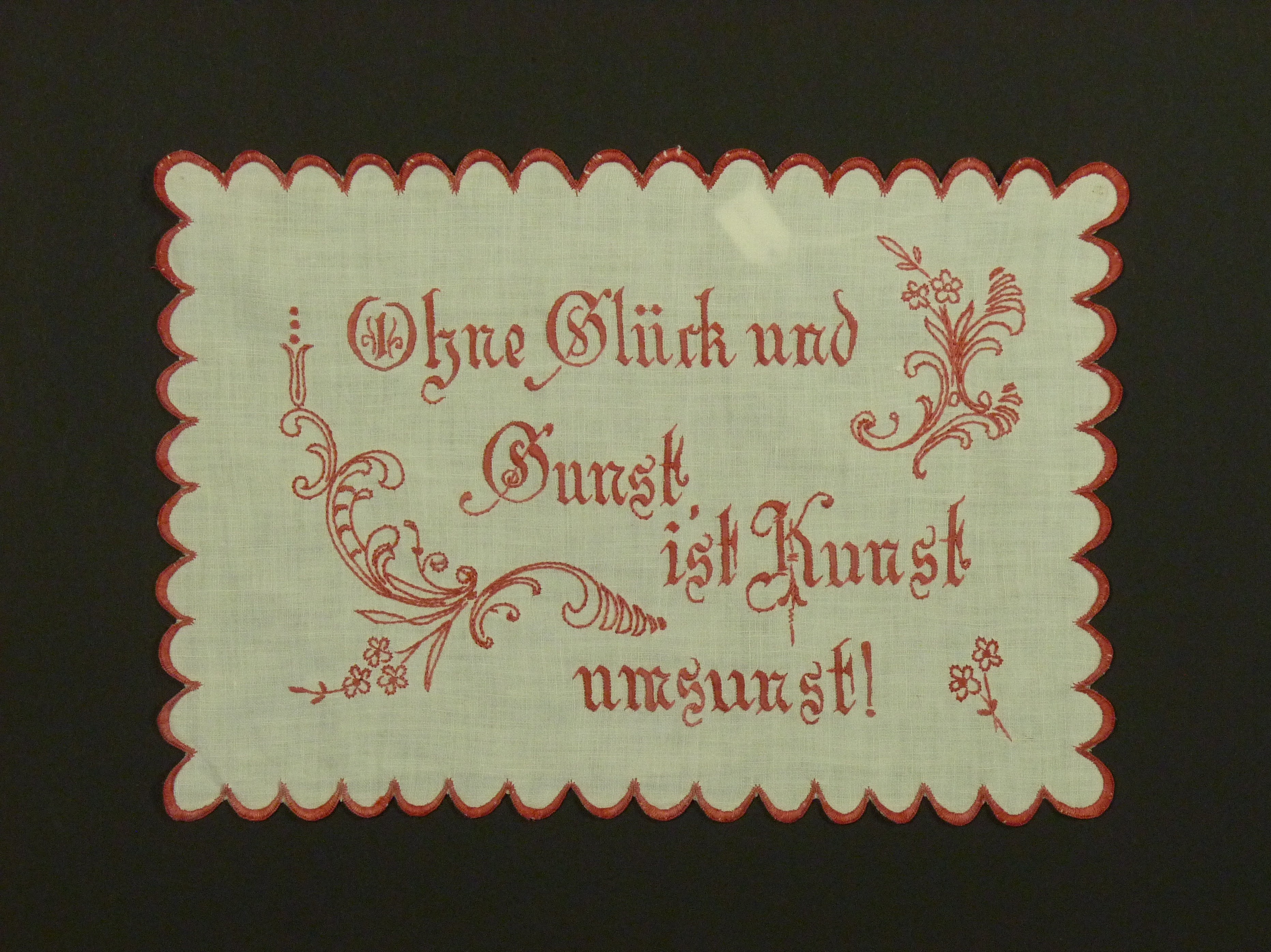 Rand bogenförmig; rot bestickt;