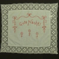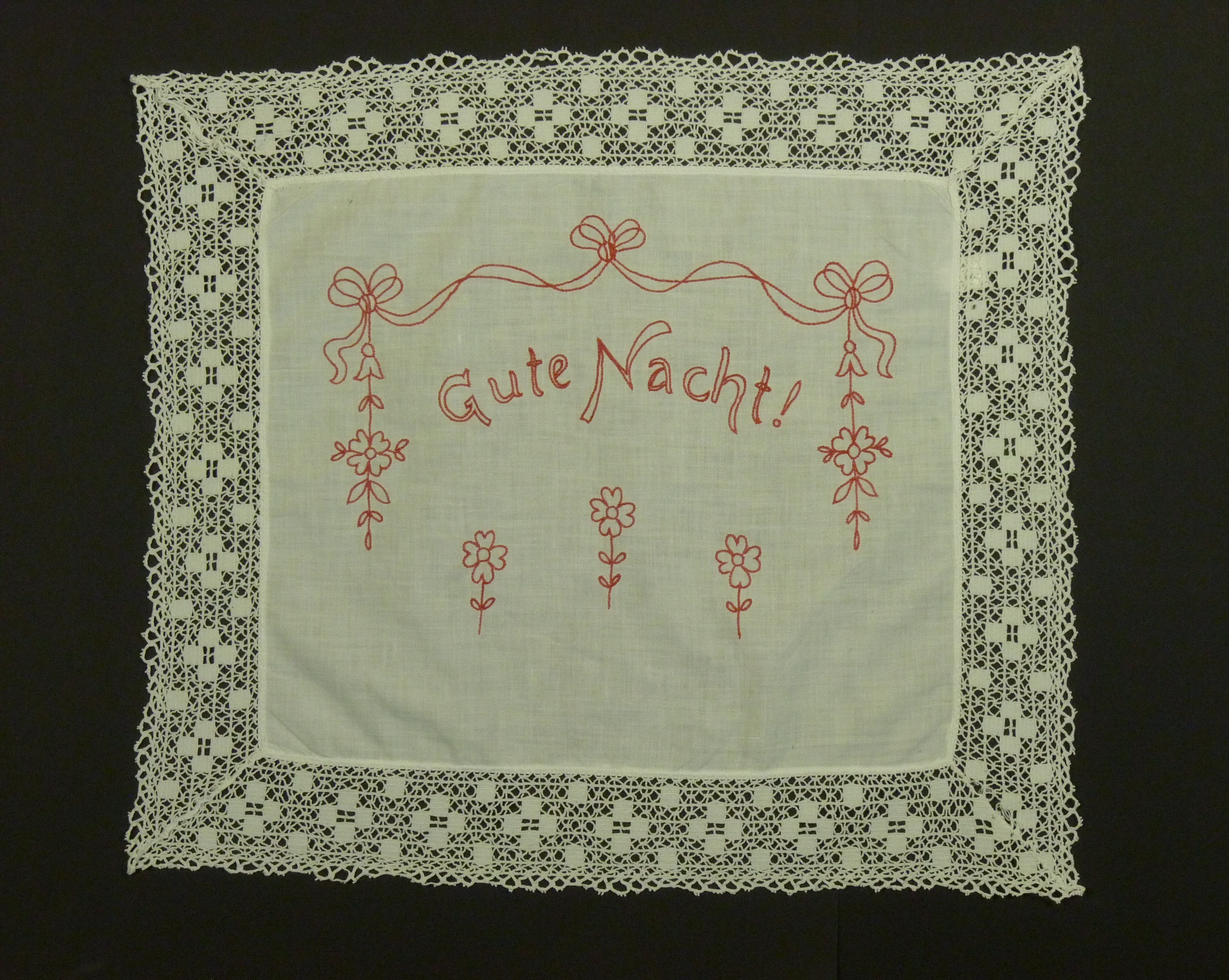 rot bestickt; mit Spitzen eingefasst; Girlande und Blumen;