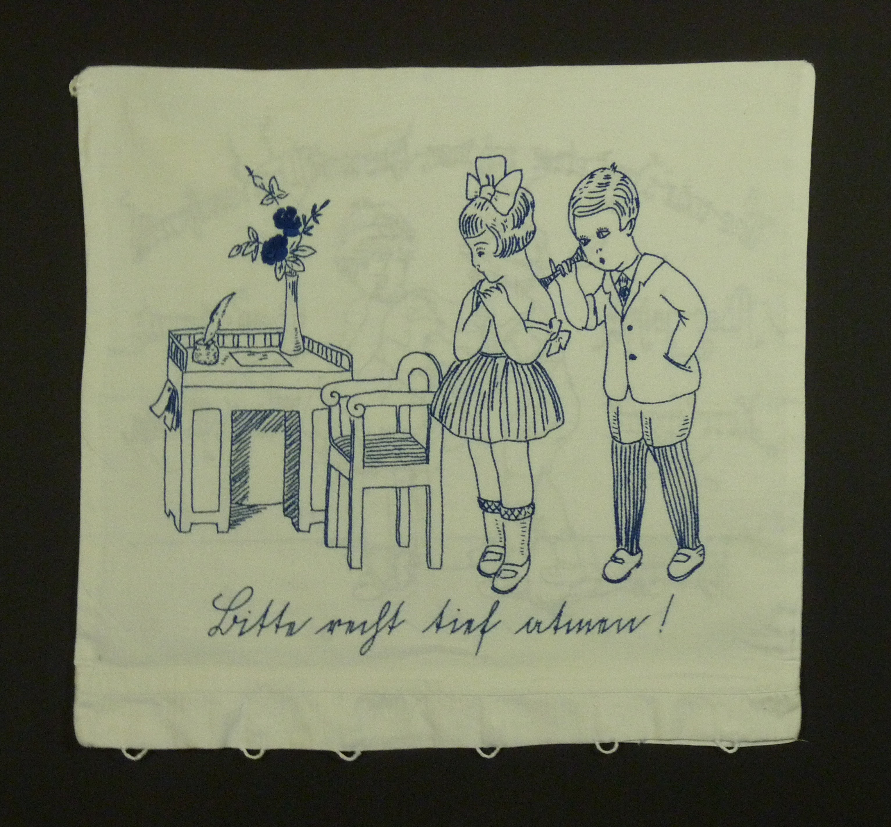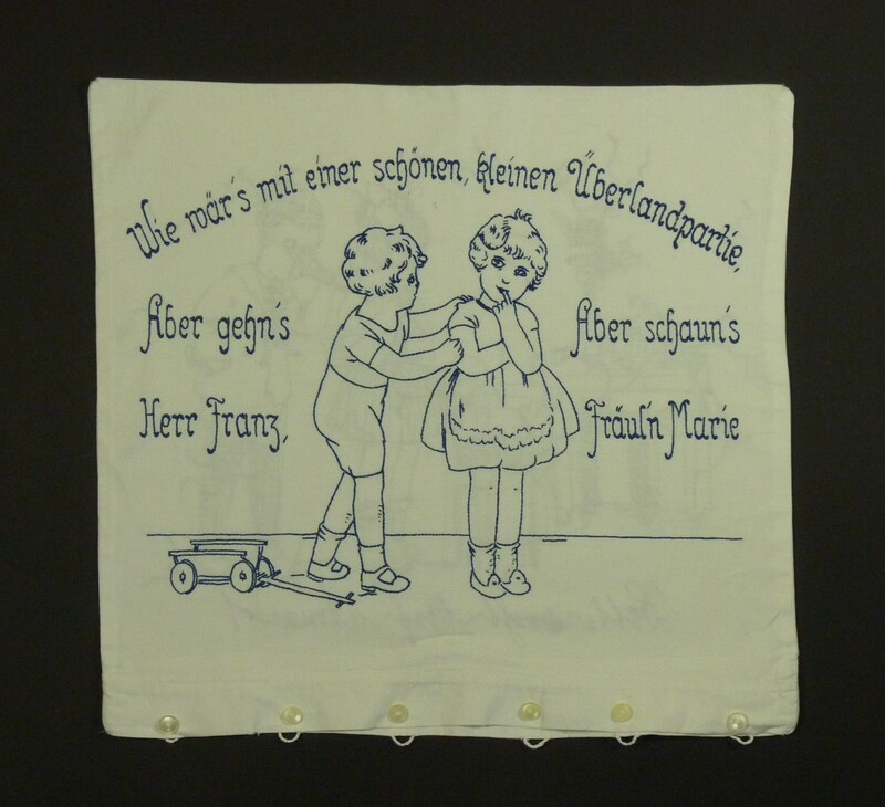 blau bestickt; Rückseite und Vorderseite unterschiedlich;