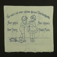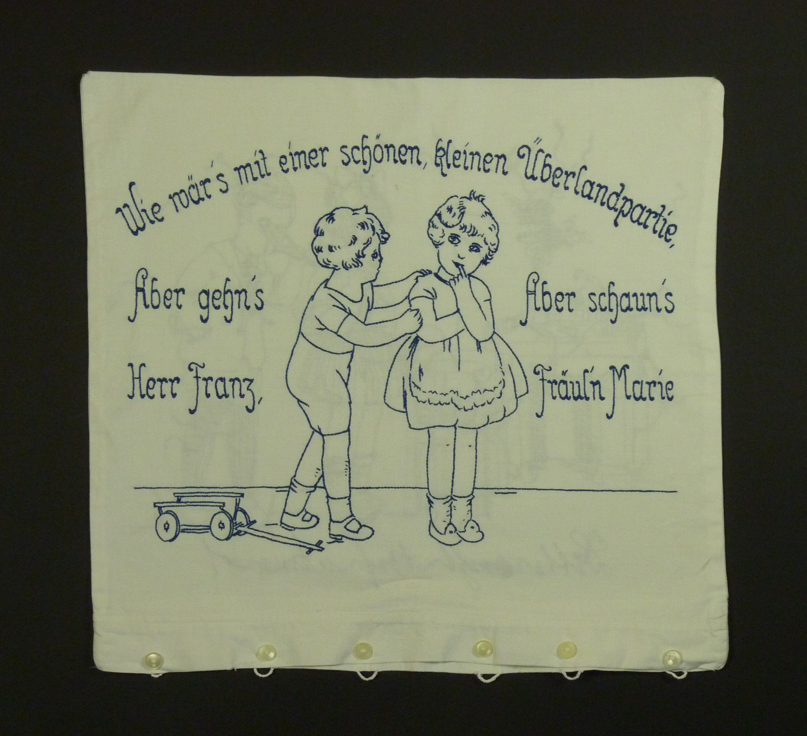 Spruch: "Wie wär's mit einer schönen, kleinen Überlandpartie, / Aber gehn's / Herr Franz, / Aber schaun's / Fräul'n Marie"
