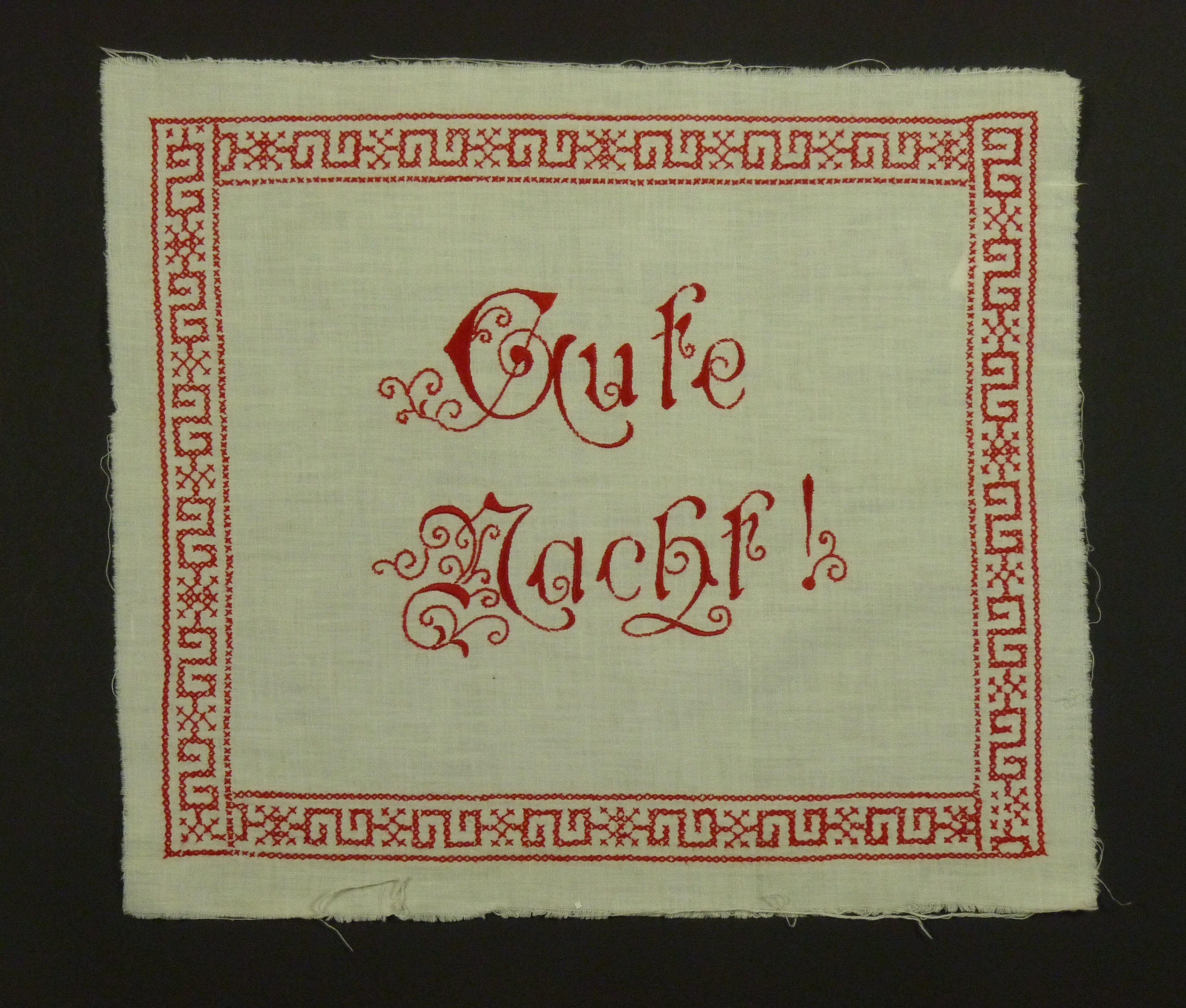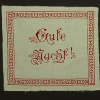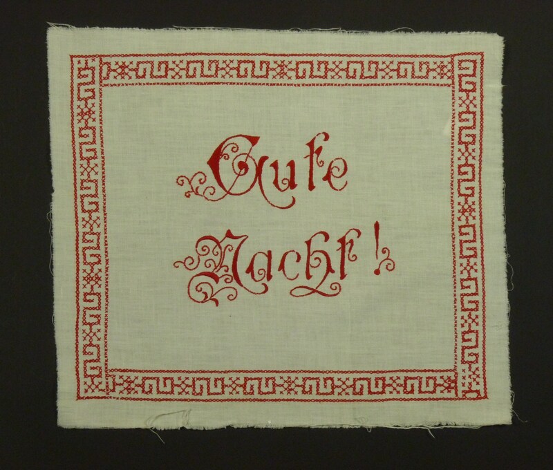 rot bestickt; Kreuzstich; nicht eingefasst;