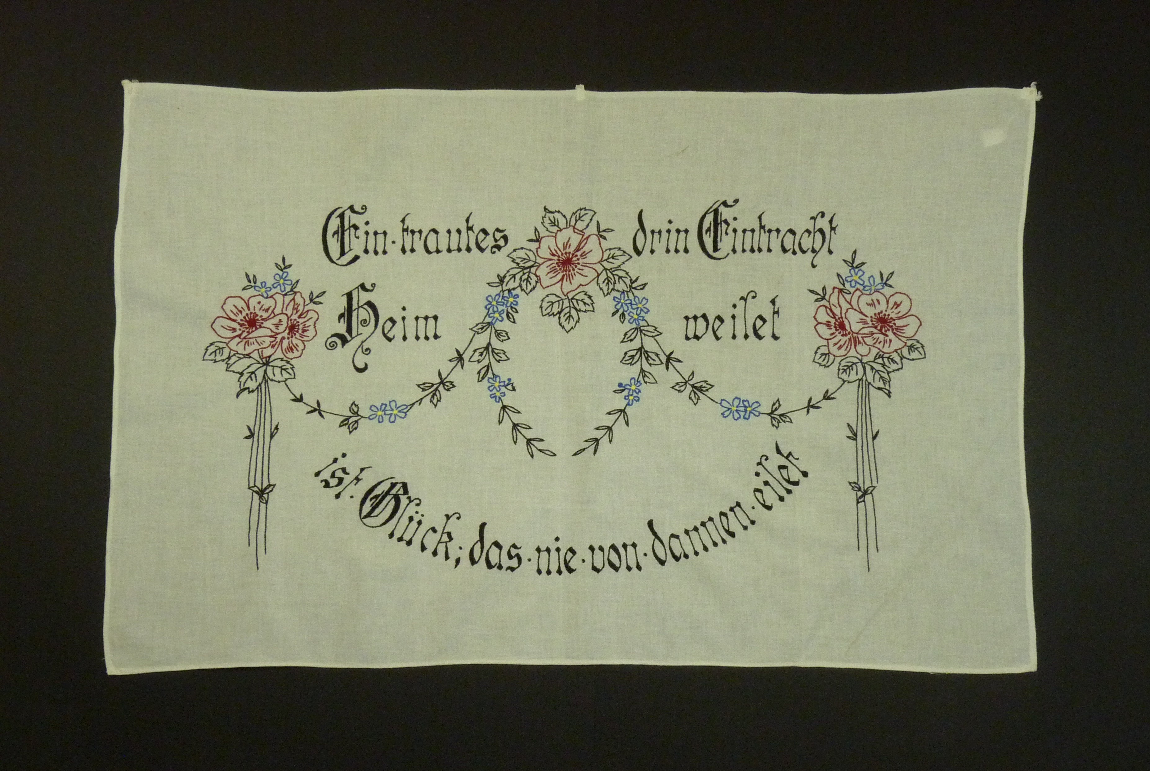 Spruch: "Ein trautes / Heim / drin Eintracht / weilet / ist Glück, das nie von dannen eilet" - Umfang