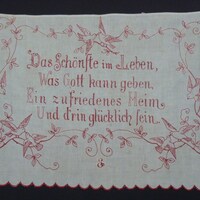 Spruch: "Das Schönste im Leben, / Was Gott kann geben, / Ein zufriedenes Heim / Und d'rin glücklich sein." - Umfang