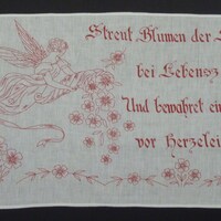 rot bestickt; Motiv: Engel streut Blumen;