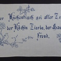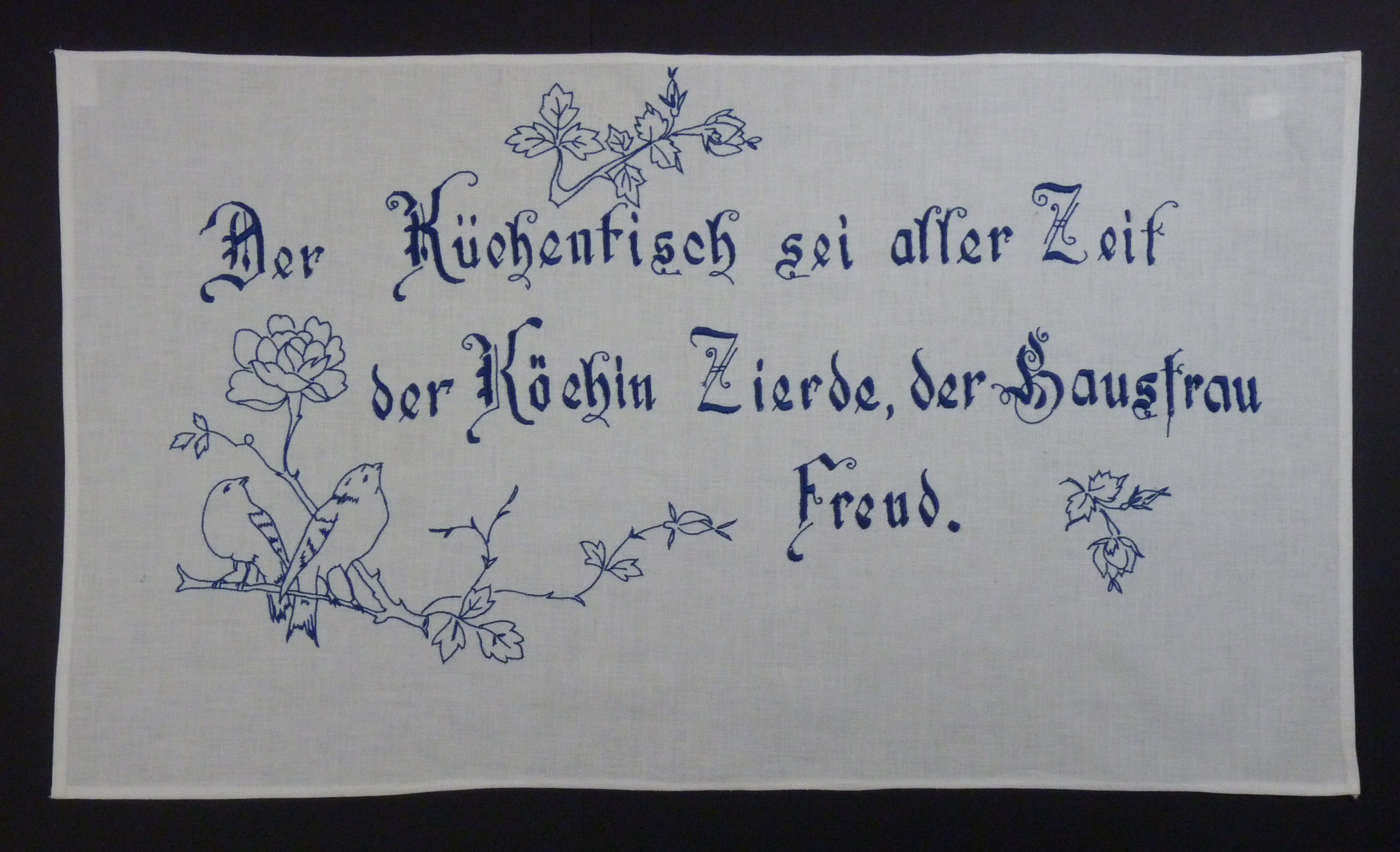 Spruch: "Der Küchentisch sei aller Zeit / der Köchin Zierde, der Hausfrau / Freud." - Umfang