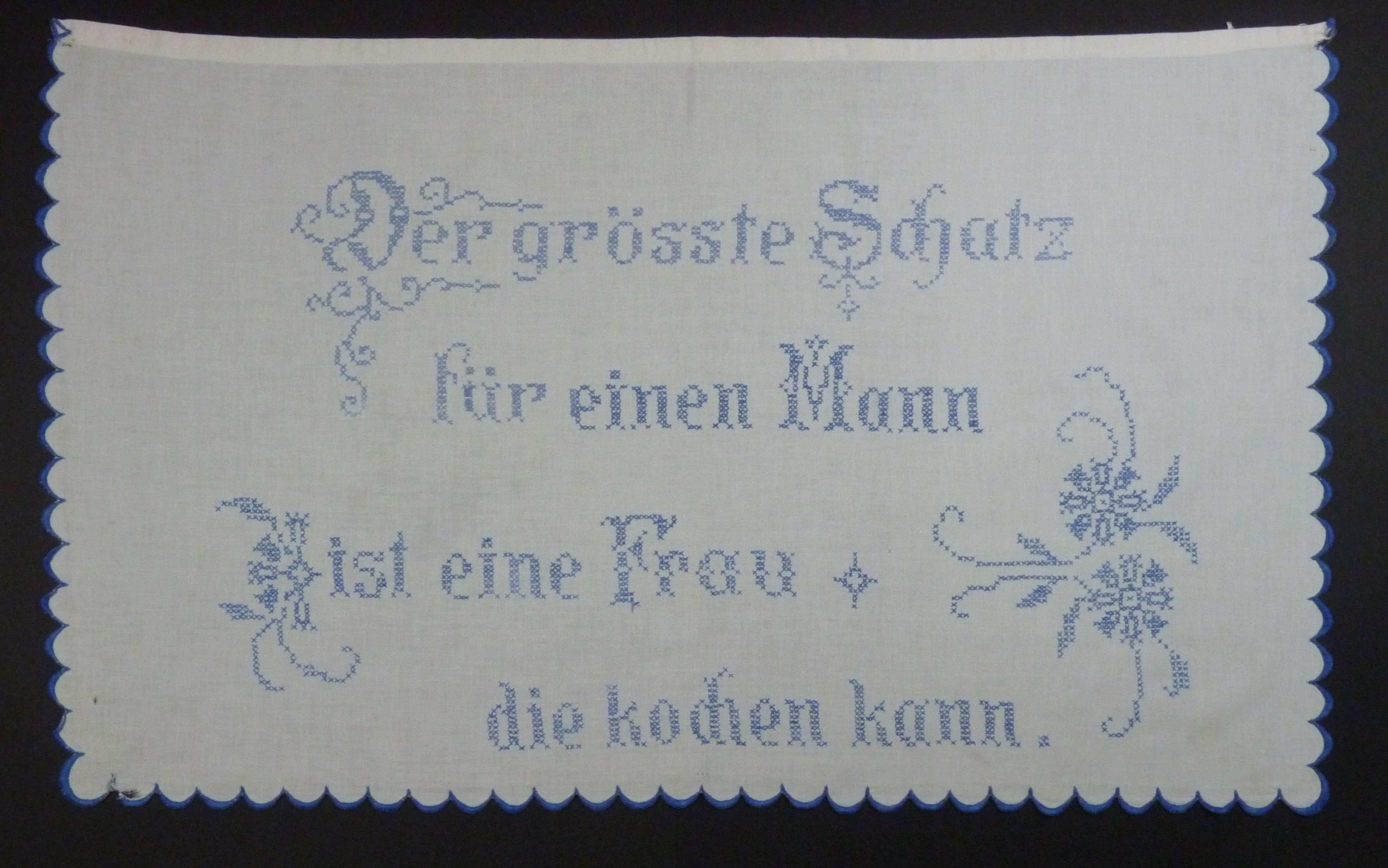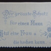 Spruch: "Der grösste Schatz / für einen Mann / ist eine Frau / die kochen kann." - Umfang