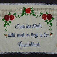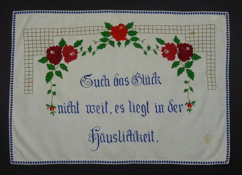 Spruch: "Such das Glück / nicht weit, es liegt in der / Häuslichkeit." - Umfang