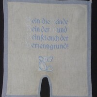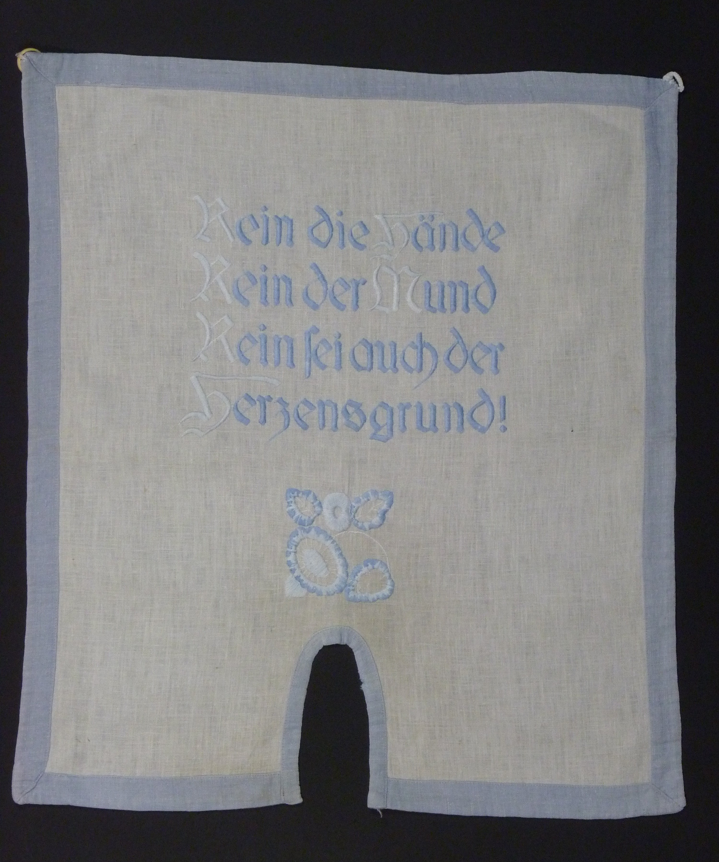 Spruch: "Rein die Hände / Rein der Mund / Rein sei auch der / Herzensgrund!" - Umfang