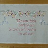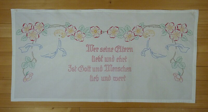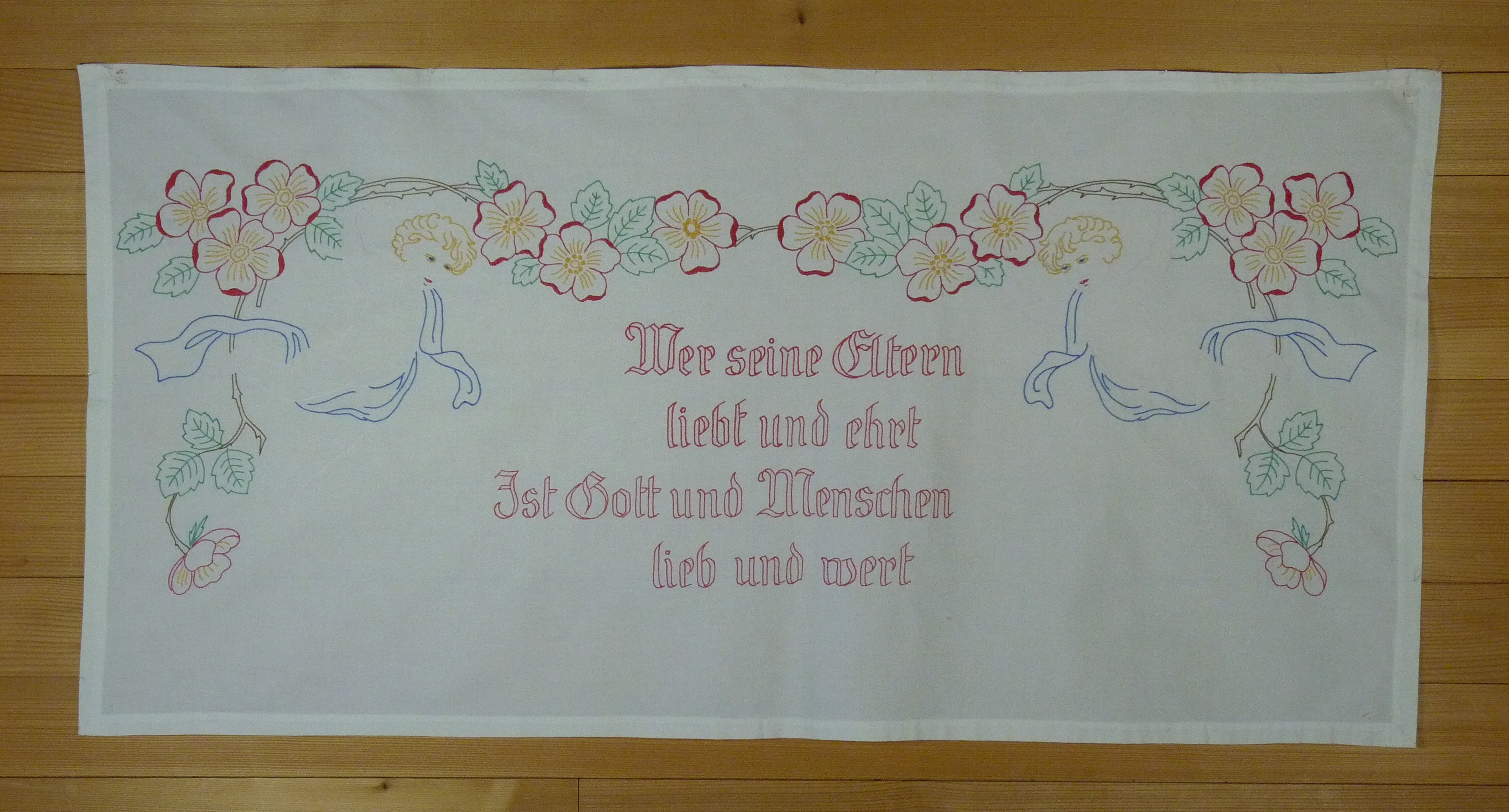 Spruch: "Wer seine Eltern / liebt und ehrt / Ist Gott und Menschen / lieb und wert /"