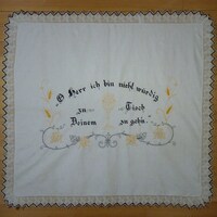 Spruch (in Anführungszeichen): "O Herr ich bin nicht würdig / zu Deinem / Tisch zu geh'n."