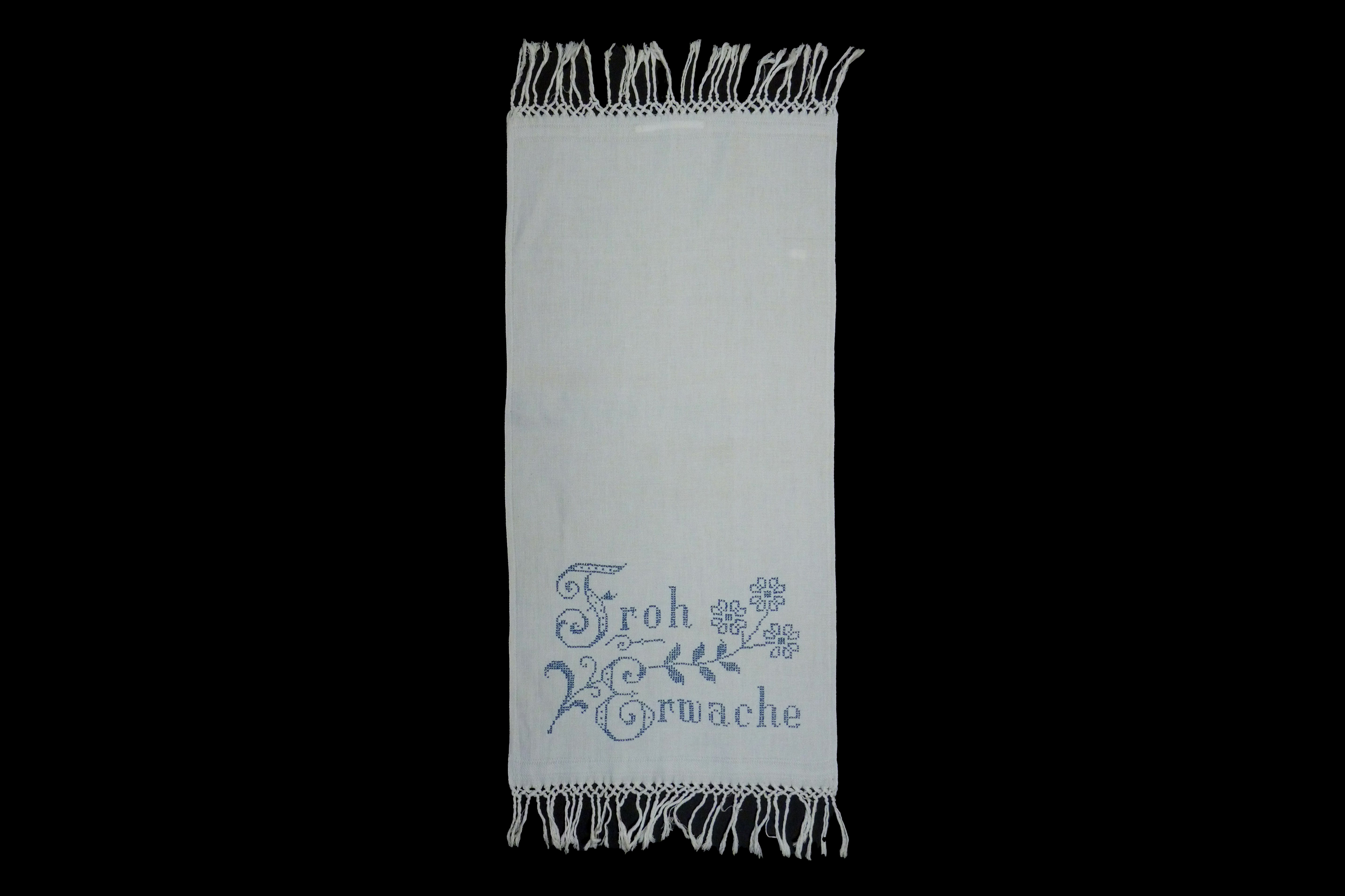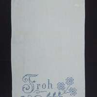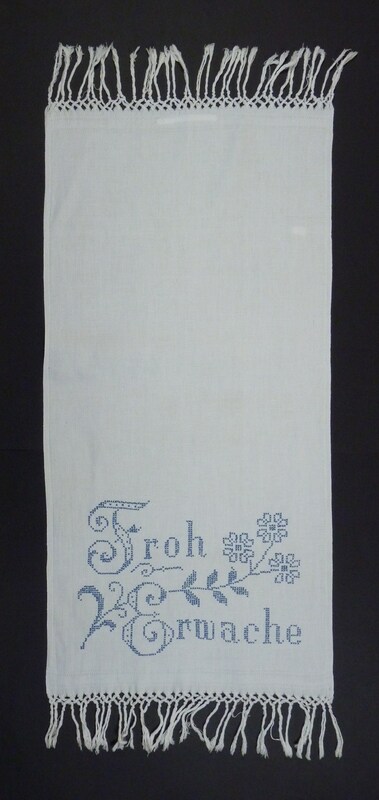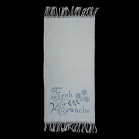 blau bestickt; Kreuzstich; Motiv: Blume mit Blätter; Fransen;