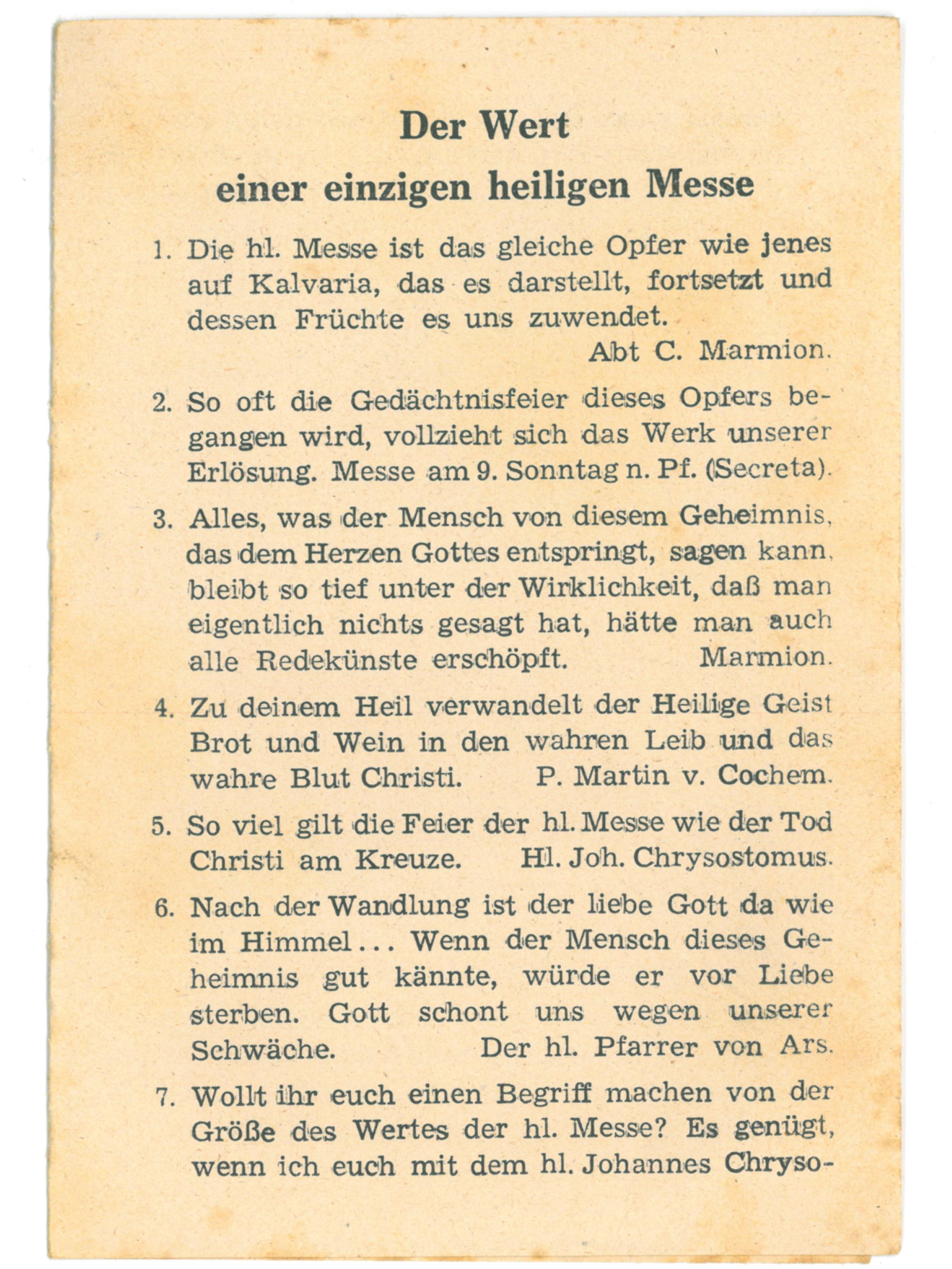 Buch; Der Wert einer einzigen heiligen Messe; Es werden 18 Punkte aufgezählt