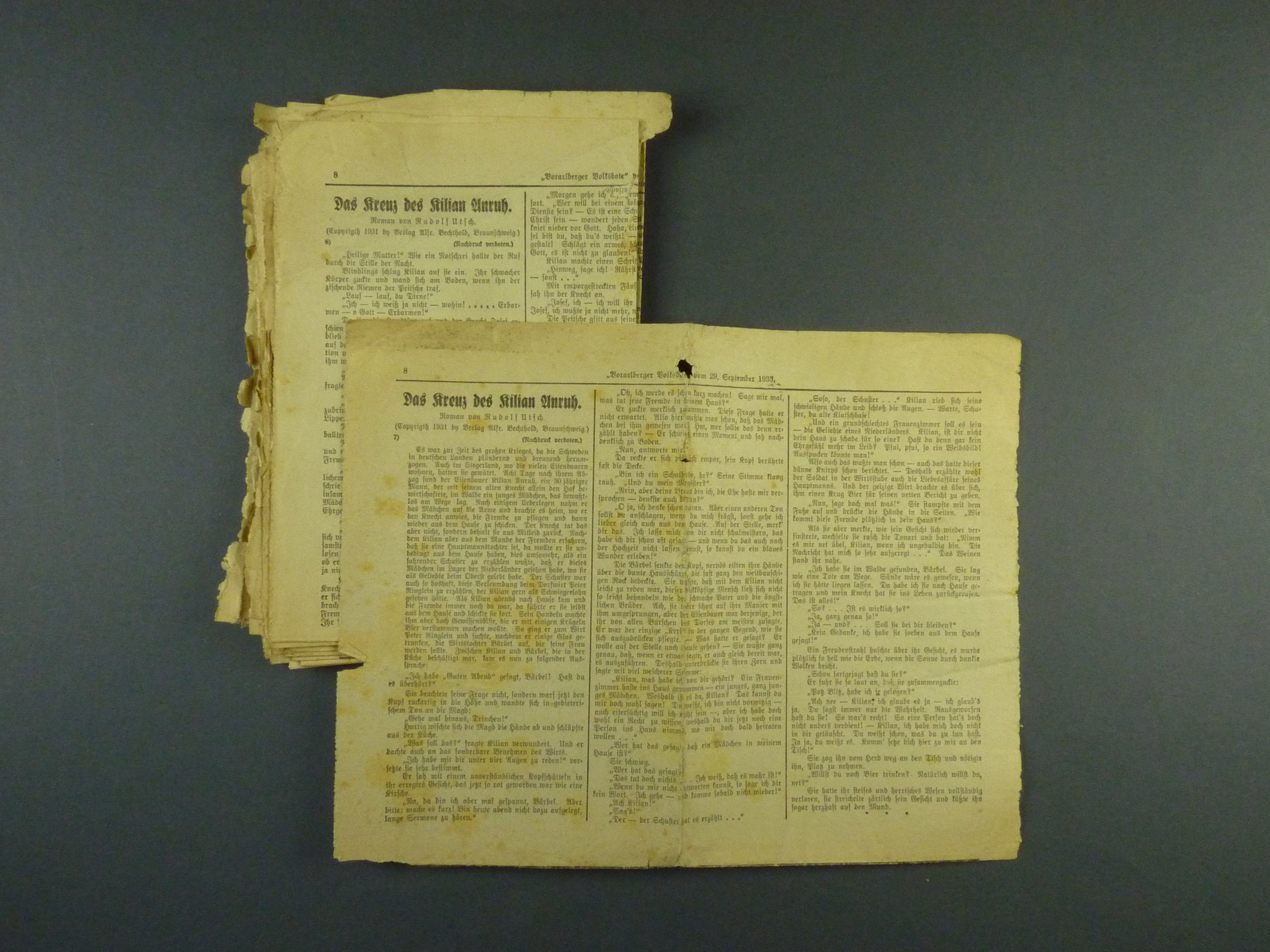 22 Artikel (FM-738-01 bis FM-738-22); Fortsetzungsroman "Das Kreuz des Kilian Unruh" von Rudolf Utsch; aus dem "Volksblatt";