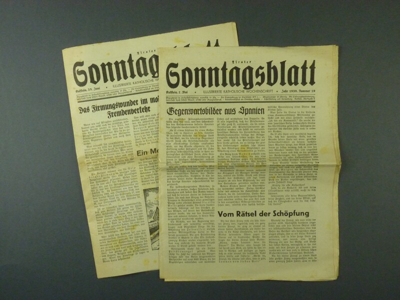 27 Zeitungen (FM-756-01 bis FM-756-27) des "Tiroler Sonntagsblatt";