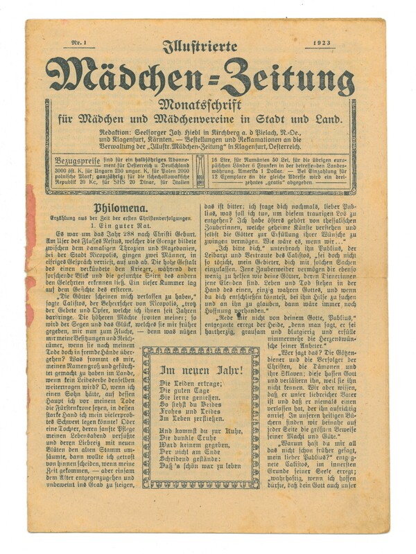 Zeitschrift: "Illustrierte Mädchen=Zeitung"