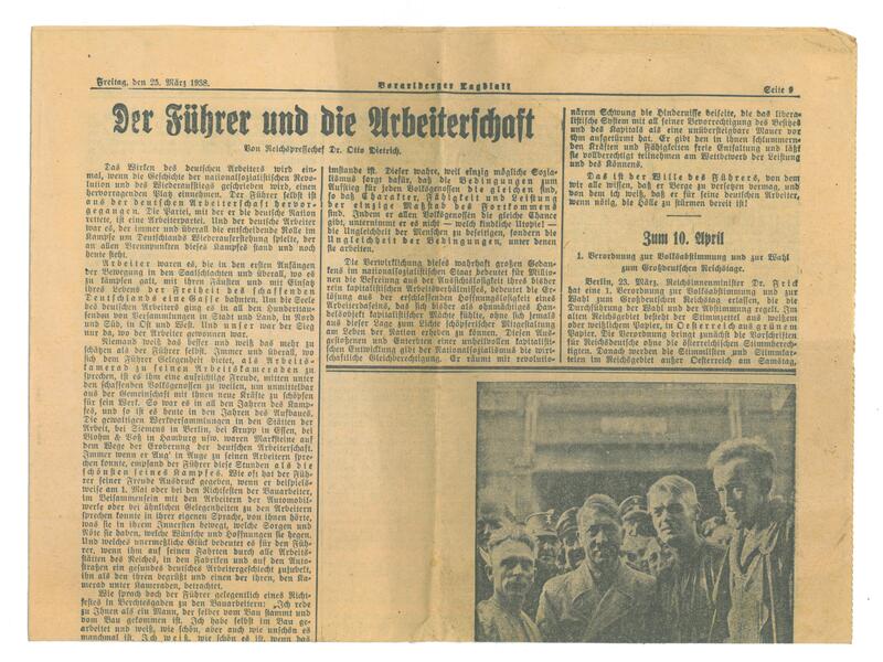 Bogen aus der Tageszeitung "Vorarlberger Tagblatt" (Seite 9 bis 12); auf Seite 11 befindet sich eine Mitteilung an das Mutterschutzwerk mit dem Titel "Achtung Mutterschutzwerk!"