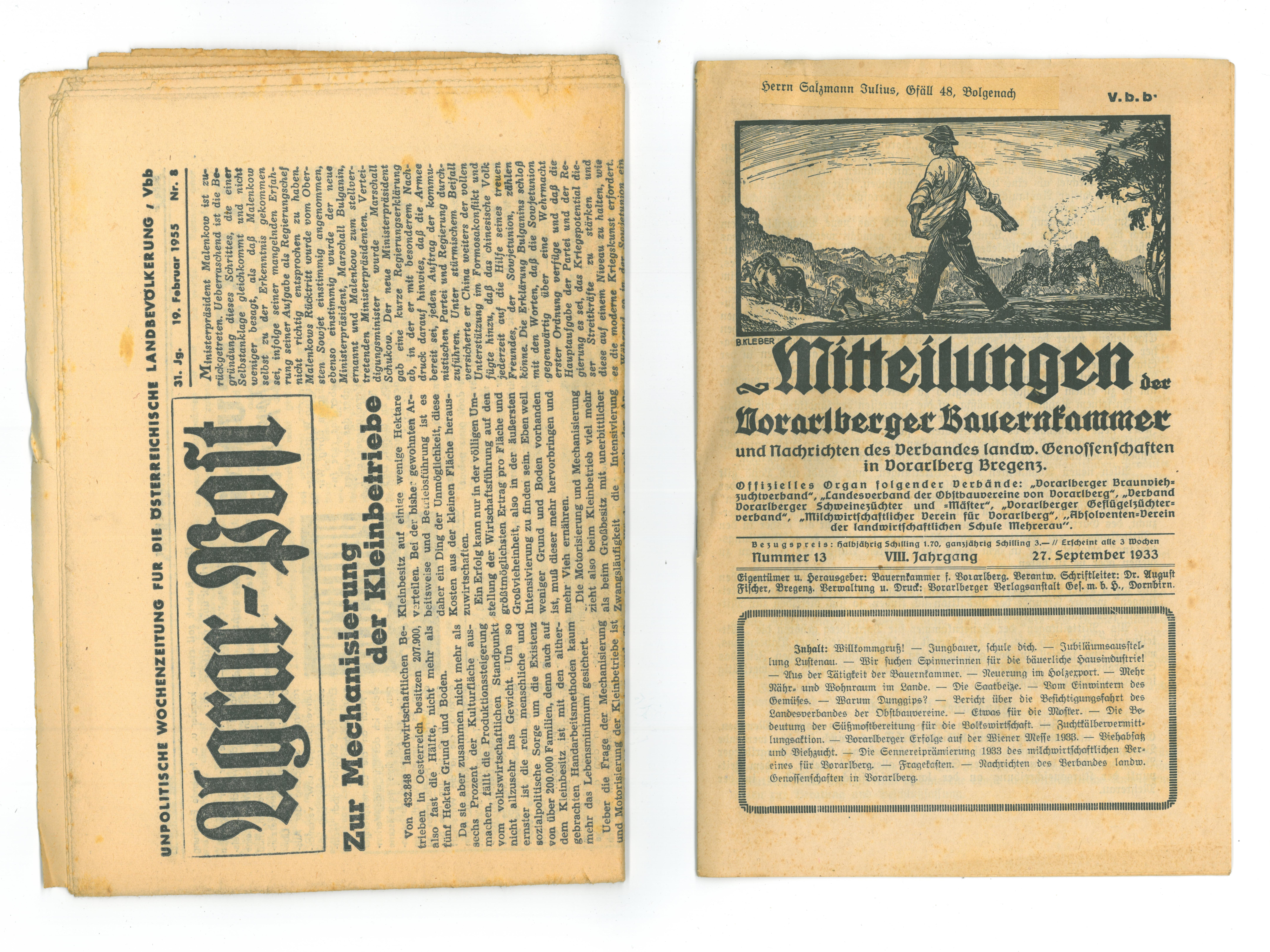 03: Mitteilungen der Vorarlberger Bauernkammer (Nummer 13, VIII. Jahrgang, 27. September 1933 und Nummer 14, VIII. Jahrgang, 3 November 1933)