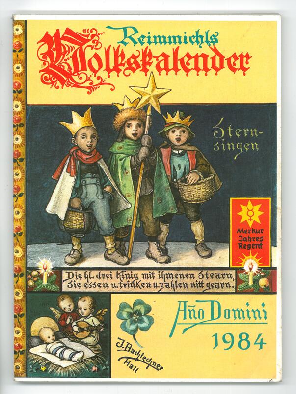 7 Ausgaben des Volkskalenders, laut Eigenbeschreibung "ein bedeutender Vermittler Tiroler Volkskultur und Bindeglied zwischen Tradition und Gegenwart", "mit zahlreichen Angaben zum Kirchenjahr, zu Brauchtum, Klima, Wetter und Naturabläufen sowie die vielfältigen kurzen literarischen Beiträge und Artikel über Geschichte, Kultur und Gesellschaft"