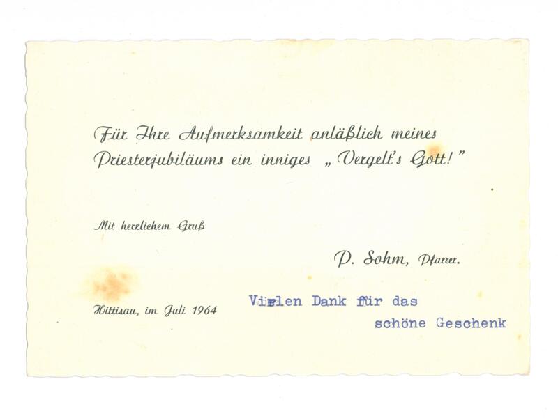 - Dankeskarte vom Pfarrer anlässlich seines Priesterjubiläums; geschwungener Rand