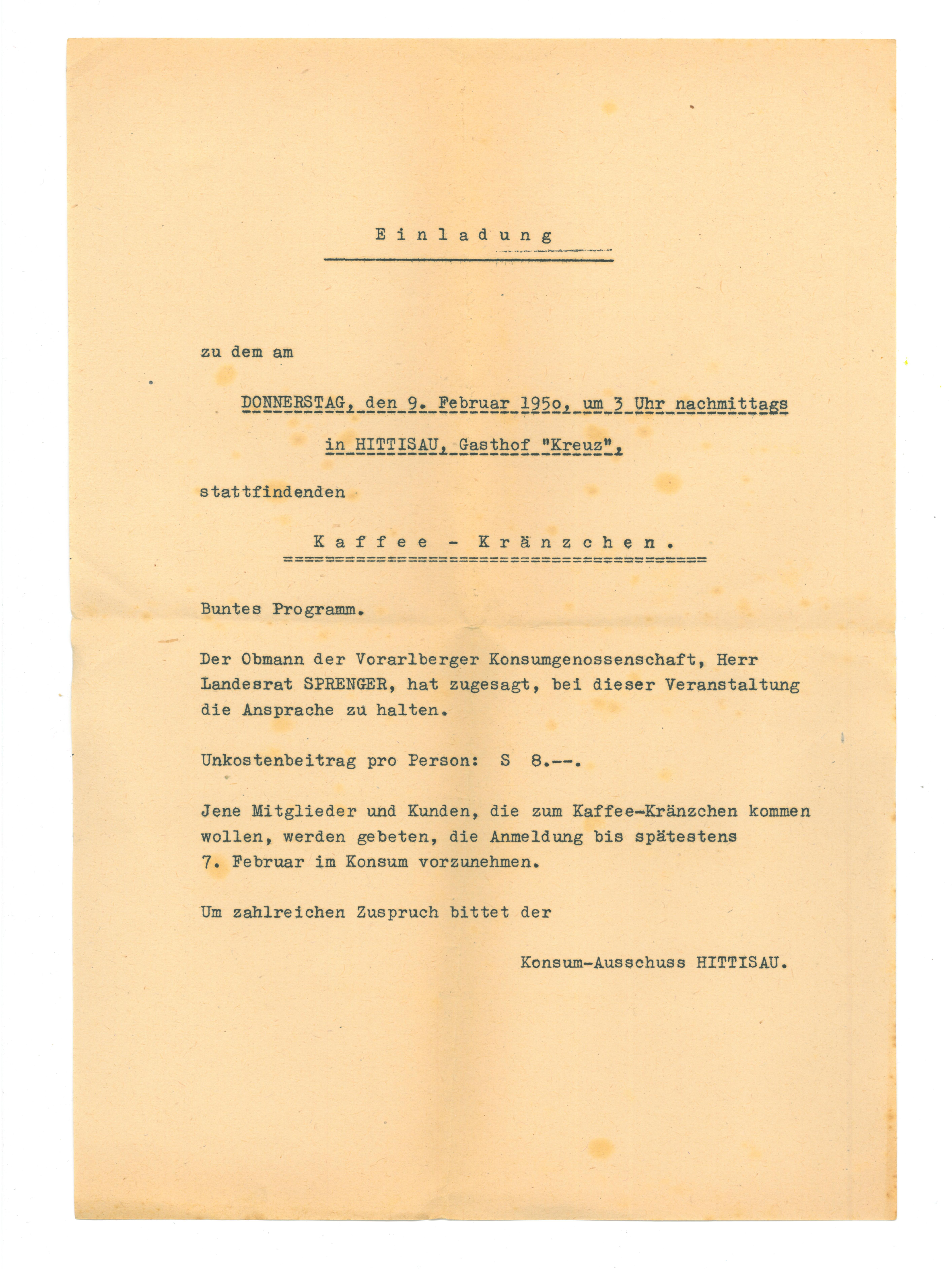 - Einladung zur Kaffee-Kränzchen vom Konsum-Ausschuss Hittisau