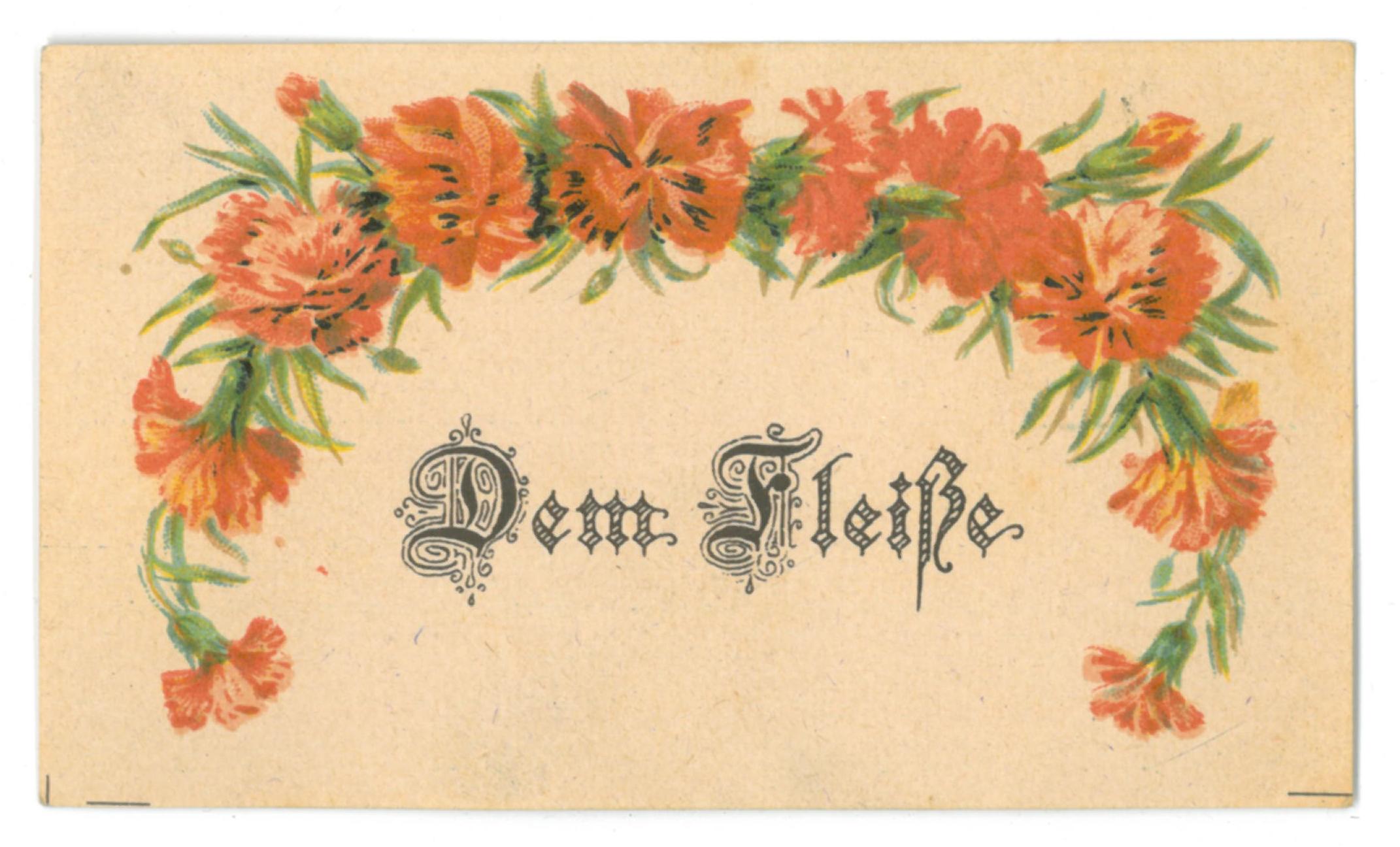 - Karte; ist um die Schrift mit roten Blumen und grünen Gräsern verziert