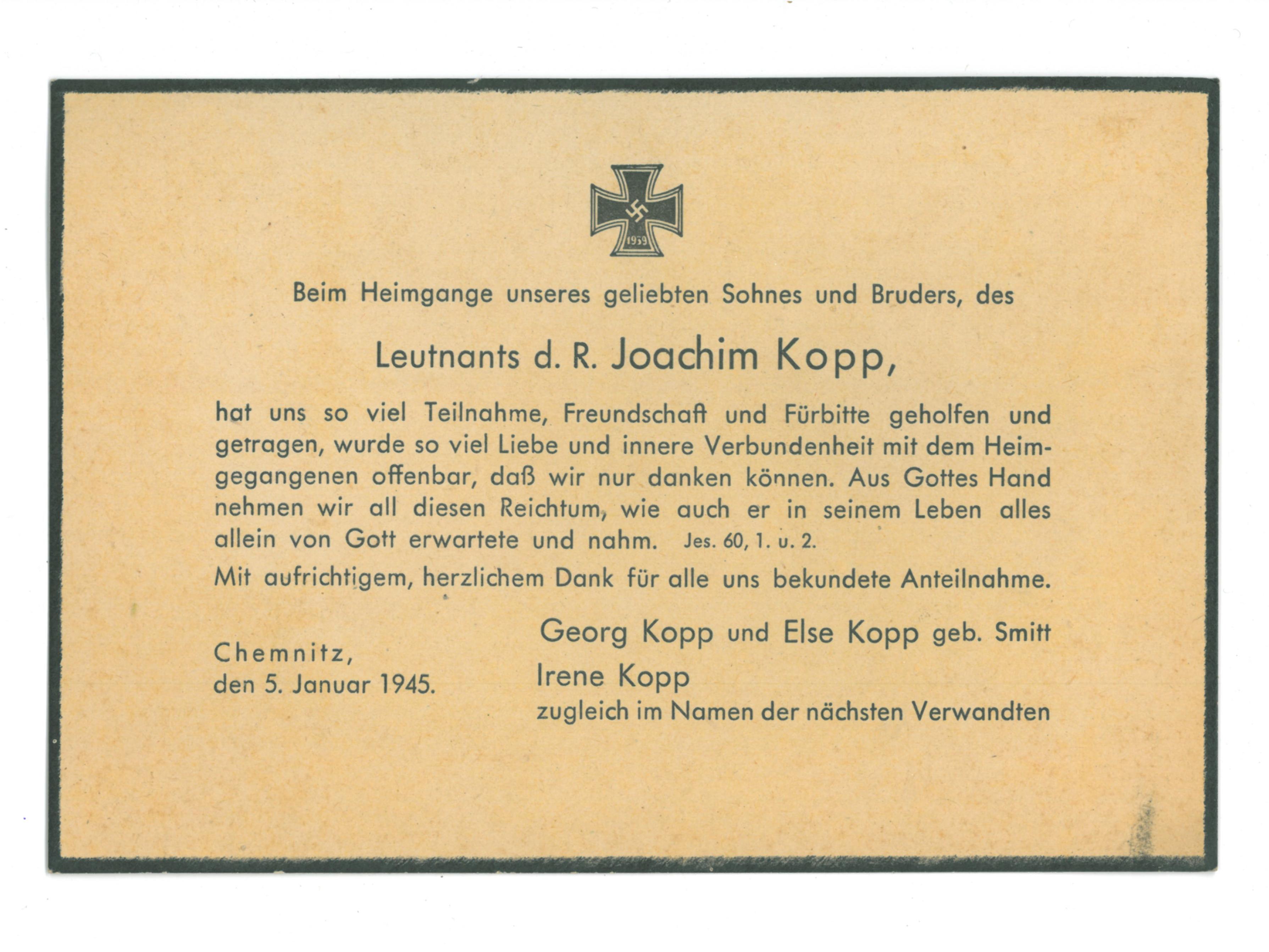 - Dankeskarte; handschriftlicher Text auf der Rückseite