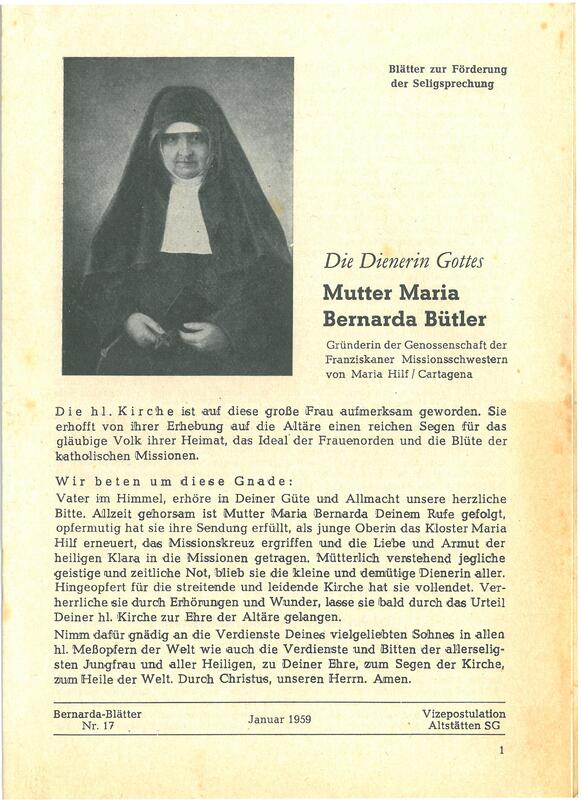 Die Dienerin Gottes. Mutter Maria Bernada Bütler. Jahrgang 1959 Blatt Nr.17